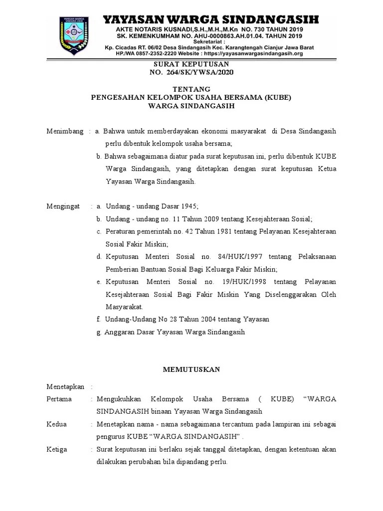 Contoh Sk Kemenkumham Yayasan - Contoh Sk Pendirian Sekolah Dari Yayasan Lektur Indo / Akta pendirian kantor dan sk.